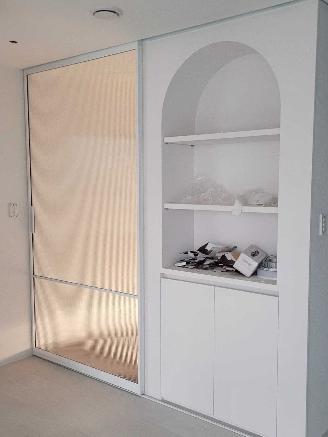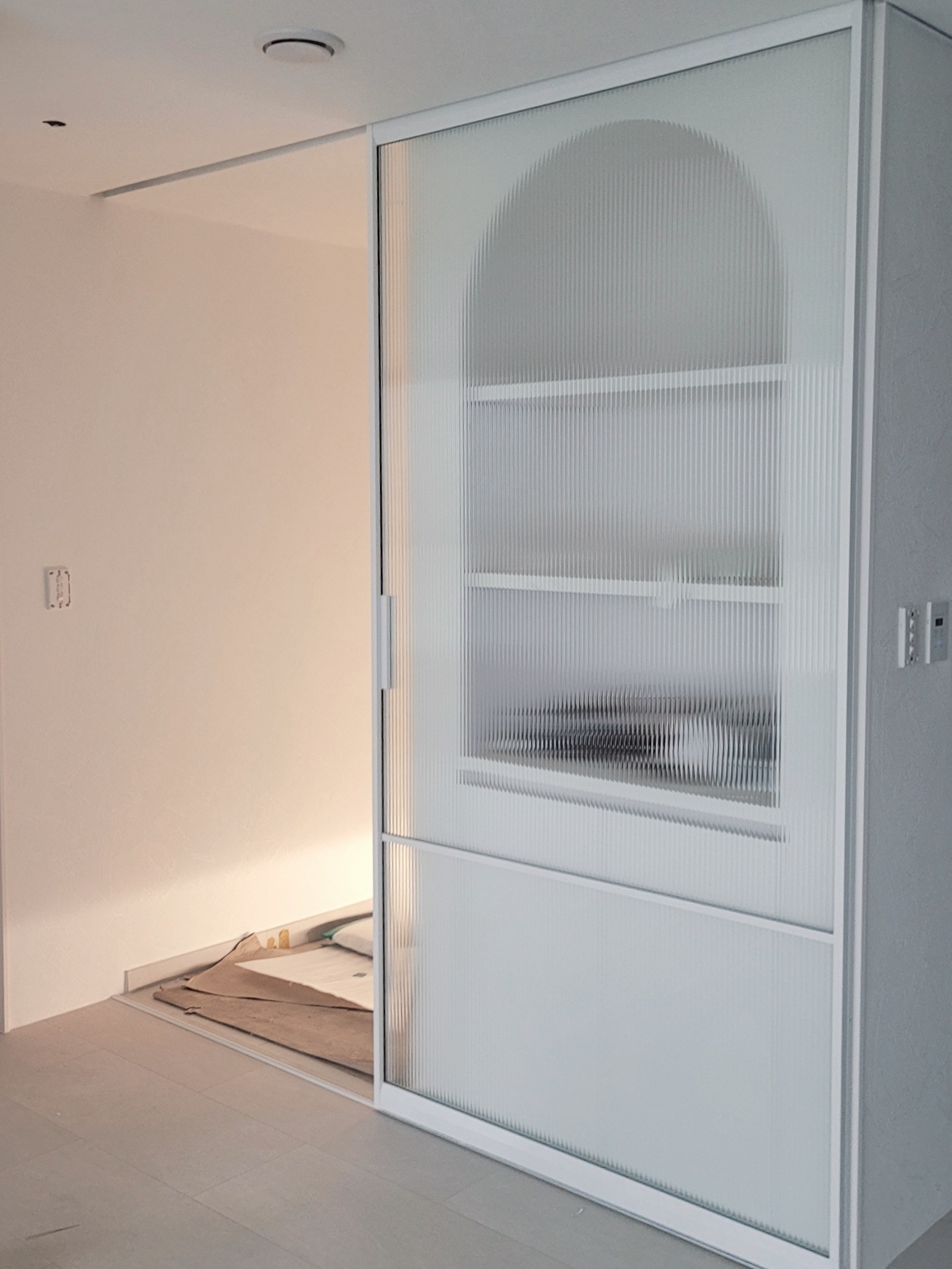 정말 봐도 봐도 만족스러운 중문이다. 도배 시공을 하지 않은 상태라면 하우징 매립은 반드시 추천한다. 정말 깔끔하다.