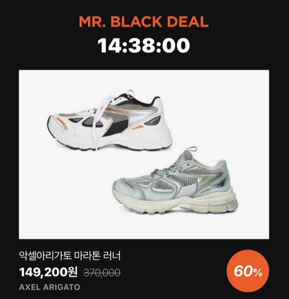 자주 눈팅하는 카페에서 액셀 아리가토라 마라톤 러너(제품 링크)라는 운동화 특가 소식을 접했다