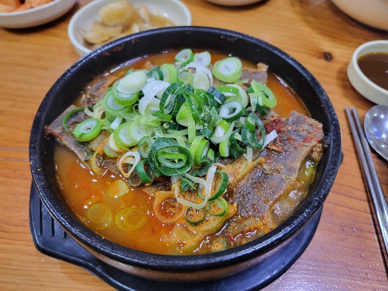 파가 고명으로 올라가있어 감칠맛을 더해주고, 무엇보다 이 집의 매력은 아낌없이 듬뿍 들어있는 뼈이다.