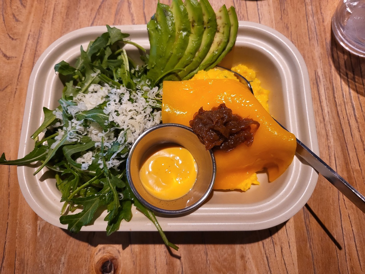 에그슬럿의 속인 계란은 뭐 담백했다. 집에서 소금 하나 안 치고 담백하게 만든 스크램블 에그에서 조금 더 촉촉한 버전.