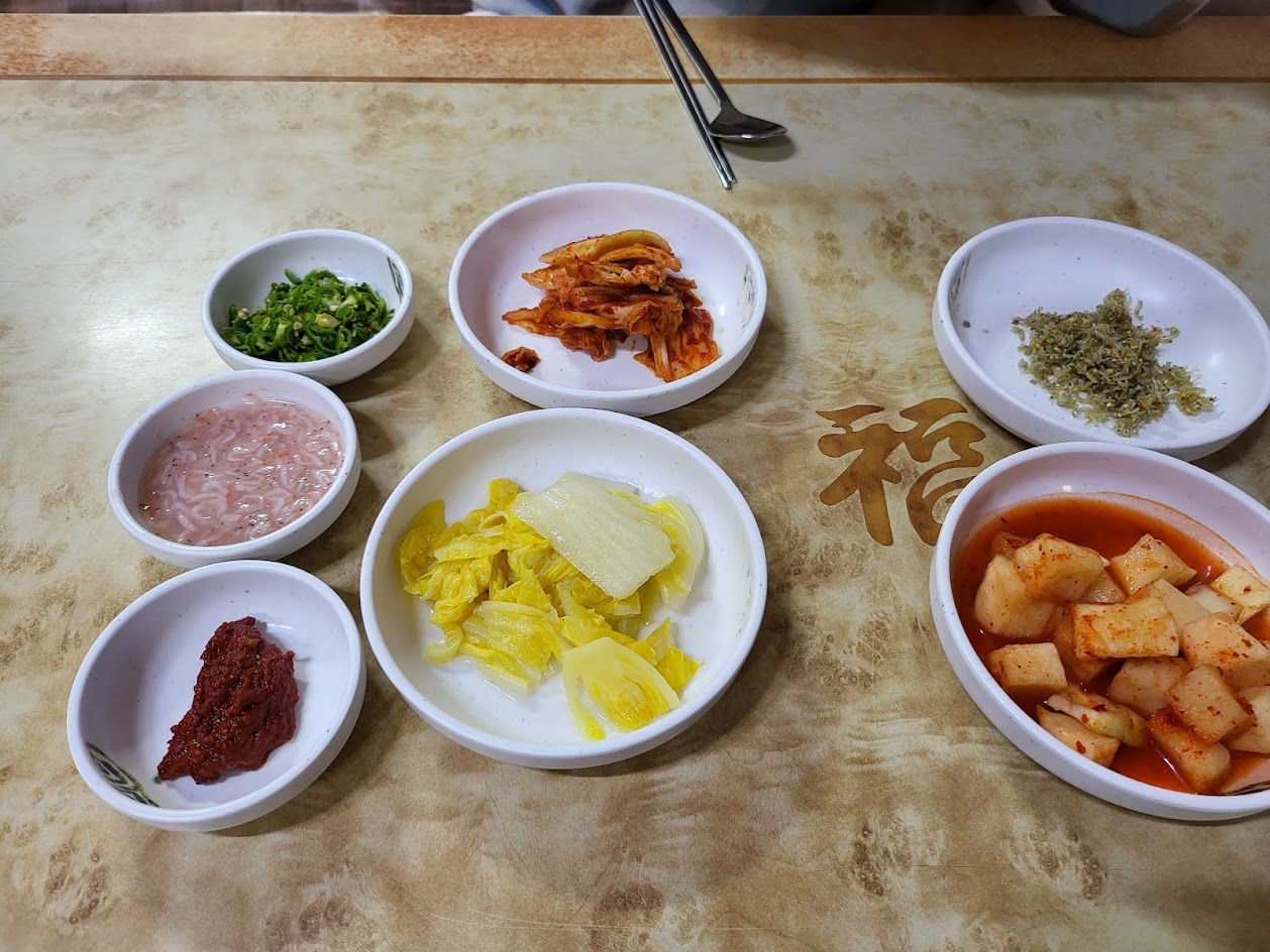장사가 잘 되는 곳이라 미리 준비 된 기본상차림을 앉자마자 가져다 주신다.