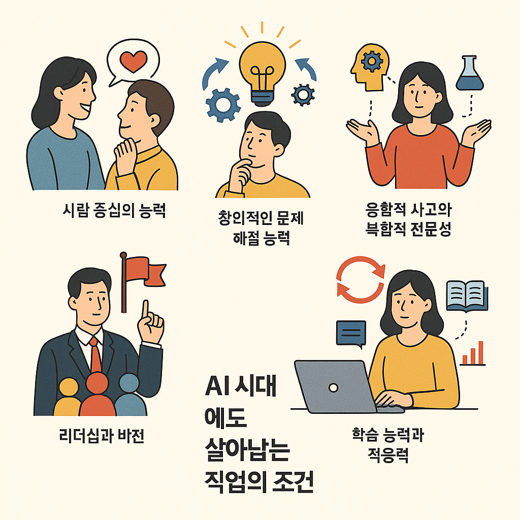 - 공감, 협력, 소통 등 인간 중심의 능력